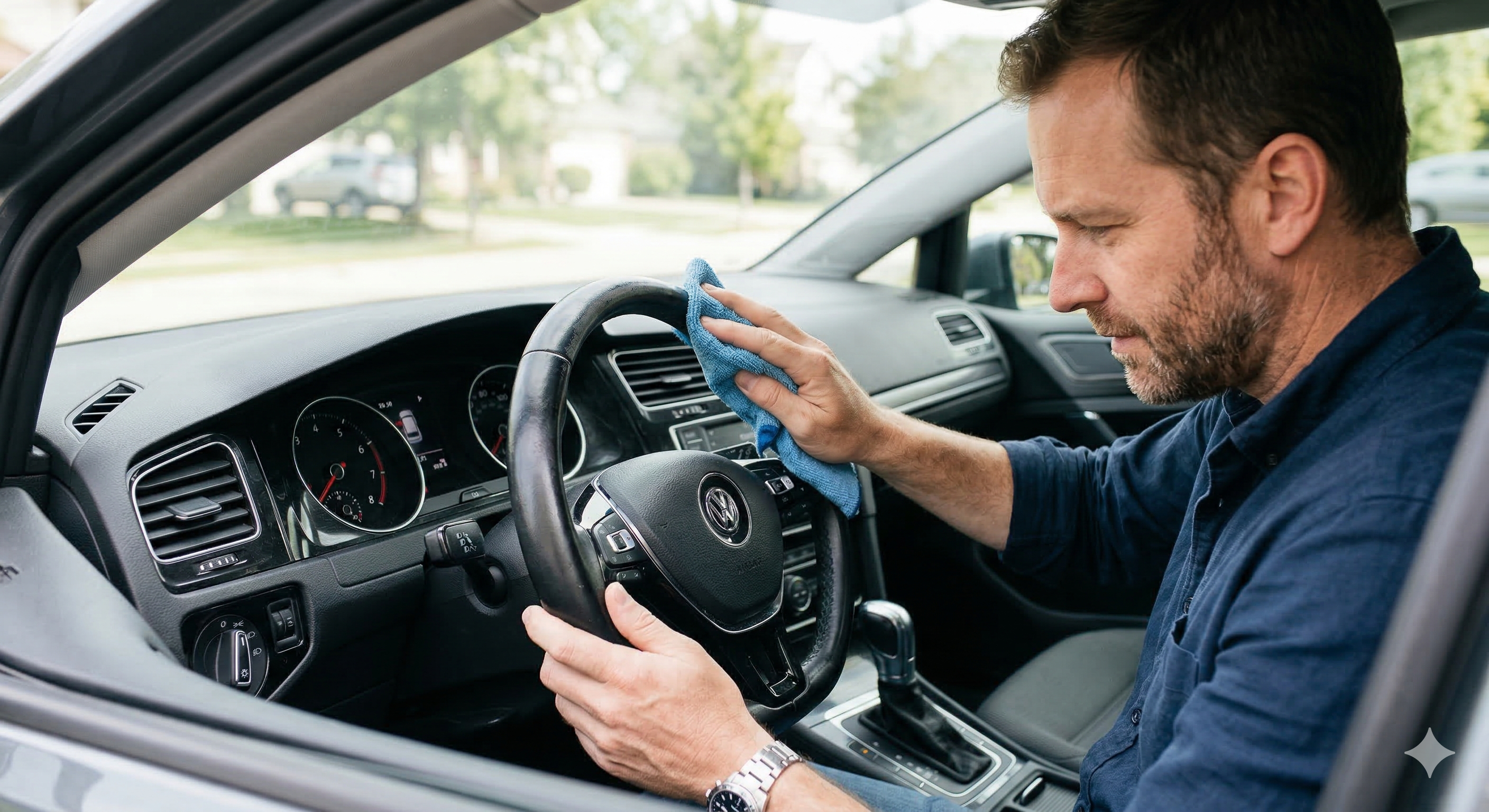 driver/chauffeur cleans and